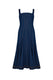 Vestido largo con escote recto limpio y elegante, las tiras de los hombros tanto delanteras como posteriores, copas y espalda presenta pespuntes en contraste de color aportando definición y detalle artesanal. La prenda se ajusta mediante botones decorativos y una cremallera invisible en el centro posterior, manteniendo la estética minimalista....
